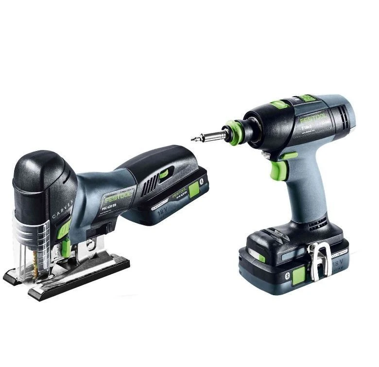In combinatie met een Bluetooth® compatibele mobiele Festool stofzuiger zorgen ze ervoor dat bij het inschakelen van de snoerloze pendeldecoupeerzaag de stofzuiger automatisch in AUTO-modus start