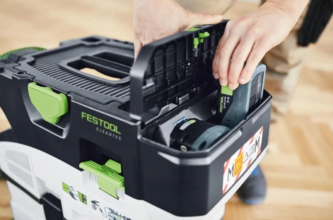 Stof behoort tot het verleden. Hallo gezondheid, ook zonder stopcontact. De compacte accustofzuiger CTMC MIDI houdt van stof en is perfect afgestemd op alle accu-machines. Om het even voor mobiele zaag-, schuur- of boortoepassingen: de compacte uitvoering en het geringe gewicht maken hem tot de perfecte partner voor het dagelijks werk. Zo werk je ook in het accu-systeem stofvrij! Voor het perfecte samenspel tussen accu-gereedschap en stofzuiger zorgt de innovatieve Bluetooth® autostart of de praktische afstandsbediening. Onze accustofzuiger schittert met maximale zuigkracht dankzij 36V-turbine met 2 x 18V-accupacks. Voor gezonder werken in stofklasse M. En alles past zoals u gewend bent: stofzuiger, gladde afzuigslang, accu-machine, Systainerverbinding T-LOC. Zo wordt het systeem rondom perfect.