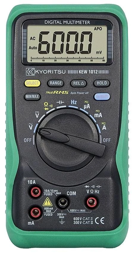 De Kyoritsu 1012 is een eenvoudige digitale True RMS multimeter. Deze multimeter bevat de meest voorkomende functies, zoals AC/DC spanning en stroom, weerstand, continuïteit, frequentie en zelfs Duty Cycle. Verder beschikt de meter over een MIN/MAX en REL functie.