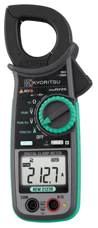 De Kyoritsu 2127R is een True RMS AC stroomtang tot 1000A met uitgebreide multimeter functies.