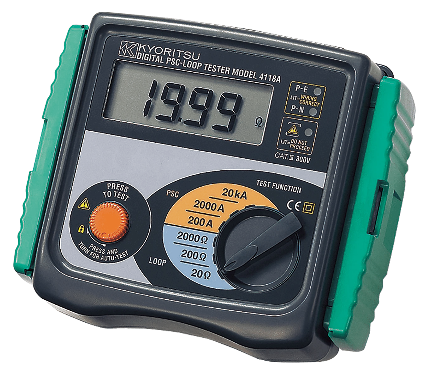 De Kyoritsu 4118A is een impedantiemeter met microprocessor voor nauwkeurige impedantiewaardes met een resolutie van 0,01Ω. De meter geeft in een aparte stand direct kortsluitstromen weer. Ook geeft de meter aan of de aansluiting correct is.