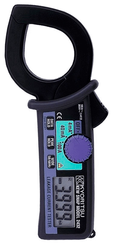 De Kyoritsu 2432 is een lekstroomtang met een resolutie van 0.001 mA. Met deze lekstroomtang is het mogelijk om de kleinste lekstromen weer te geven.