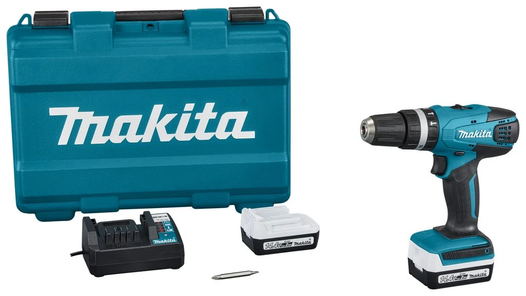 Makita HP347D002 14,4V Klopboor-/schroefmachine 2×2,0Ah Accu met DC18WB Lader in Kunststof Koffer