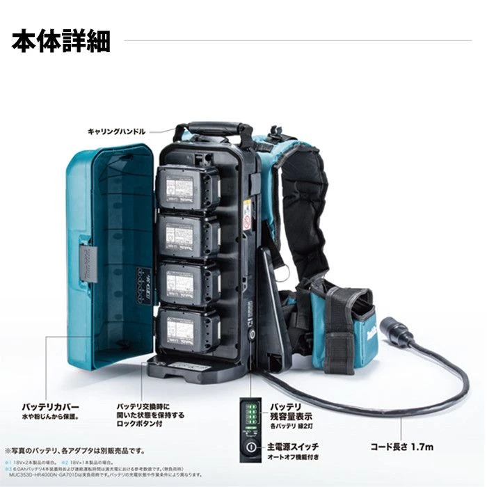 - Ruggedragen accu bank met een vermogen van 4 accu’s van 18 Volt